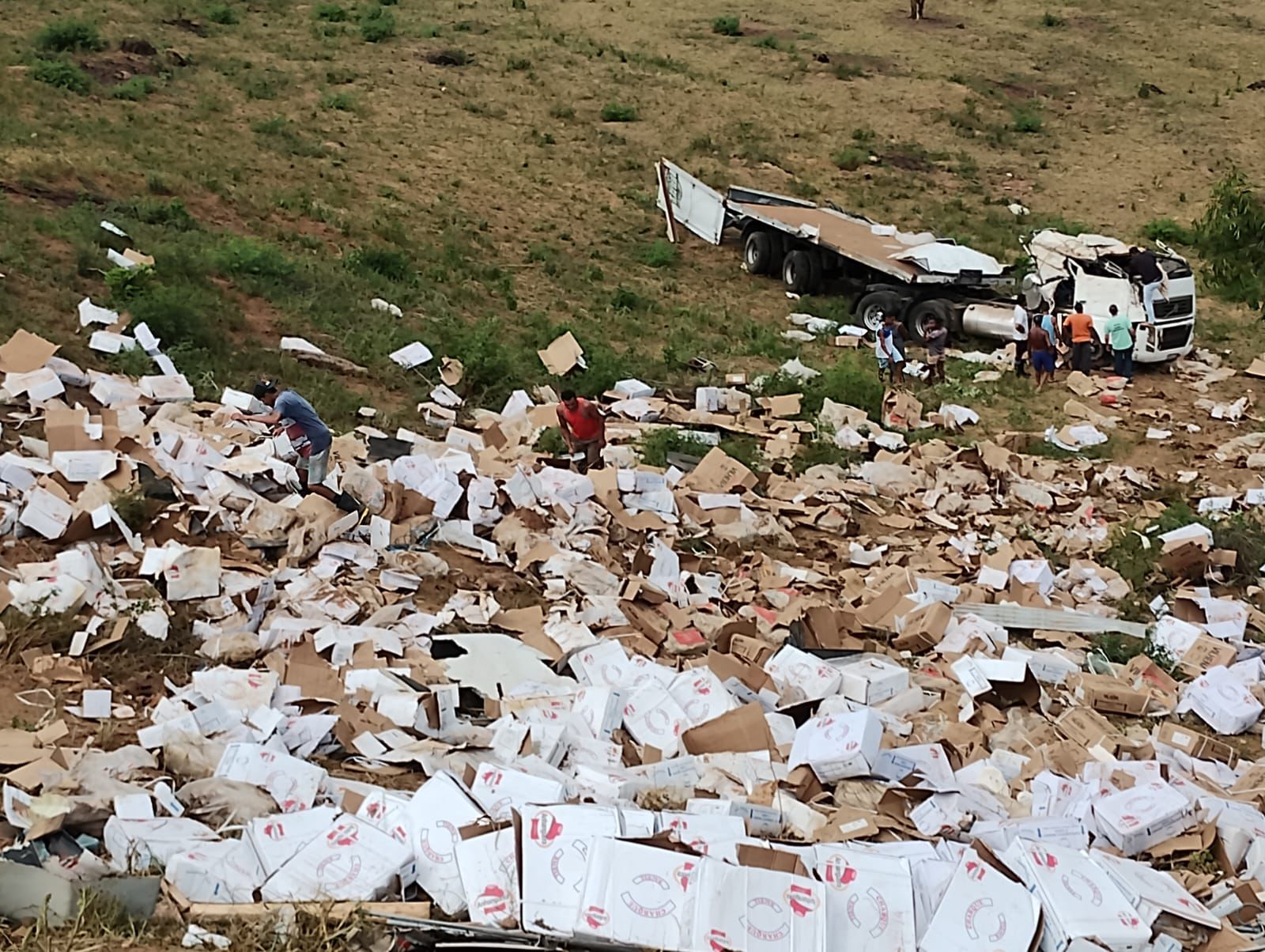 Na tarde da tarde desta segunda-feira (15), uma carreta carregada com carne de sertão, tombou em uma curva na BR-420, trecho do Povoado de Jenipapo, entre Ubaíra e Santa Inês, no Vale do Jiquiriçá no início da tarde desta segunda-feira (15).