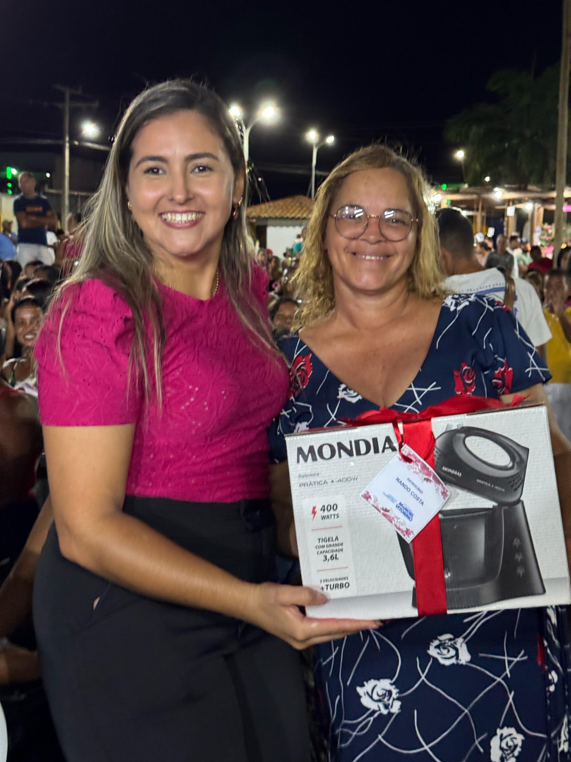 “Hoje é uma noite de celebração, mas também de reconhecimento à força e à dedicação das mulheres de Manoel Vitorino. Temos buscado valorizar as nossas mulheres porque sabemos que o desenvolvimento do município passa, principalmente, pelo protagonismo feminino. O Show de Brindes é apenas uma das iniciativas do Março Mulher, um mês dedicado a reforçar a importância da mulher em nossa sociedade. Agradeço à equipe da Assistência Social pelo empenho e aos nossos comerciantes e vereadores que nos ajudaram a realizar esse momento tão especial, com o sorteio dos brindes. Deus abençoe a todos!”, disse o prefeito, Vinícius Costa.