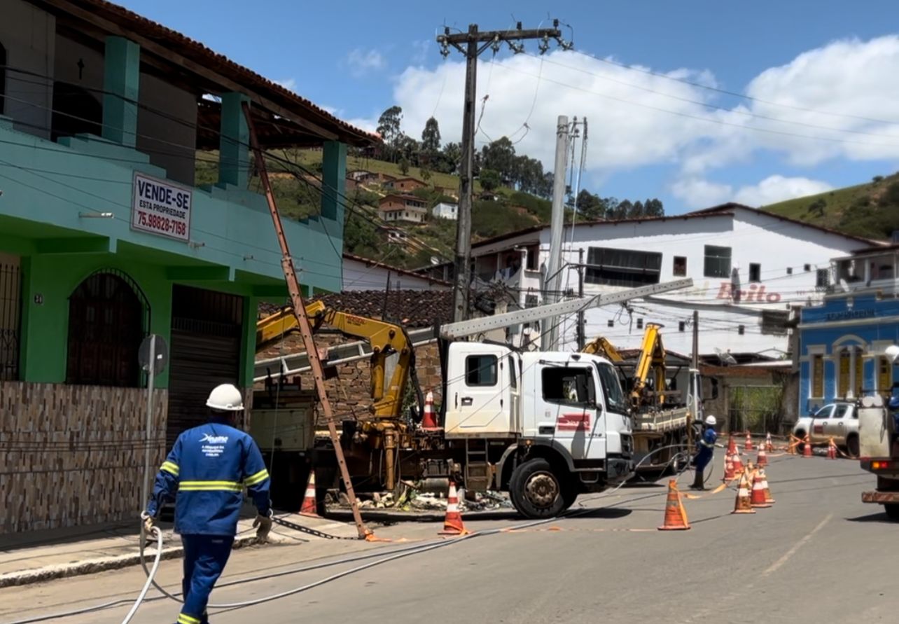 Uma empresa que presta serviço a Coelba está realizando manutenção na rede.