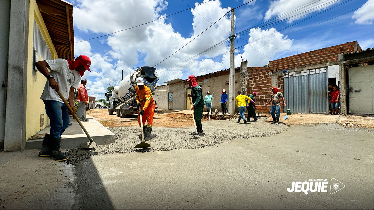A Prefeitura de Jequié, através da Secretaria de Infraestrutura, vem executando o maior programa de urbanização a história do município, levando melhorias para vias públicas que, ainda, não tinham pavimentação. Como parte desses serviços, segue com a ampliação da pavimentação em concreto usinado, contemplando nesta quarta-feira, 7, os moradores do trecho de seguimento da Avenida Beira Rio e Rua Ipiranga, no bairro Mandacaru.