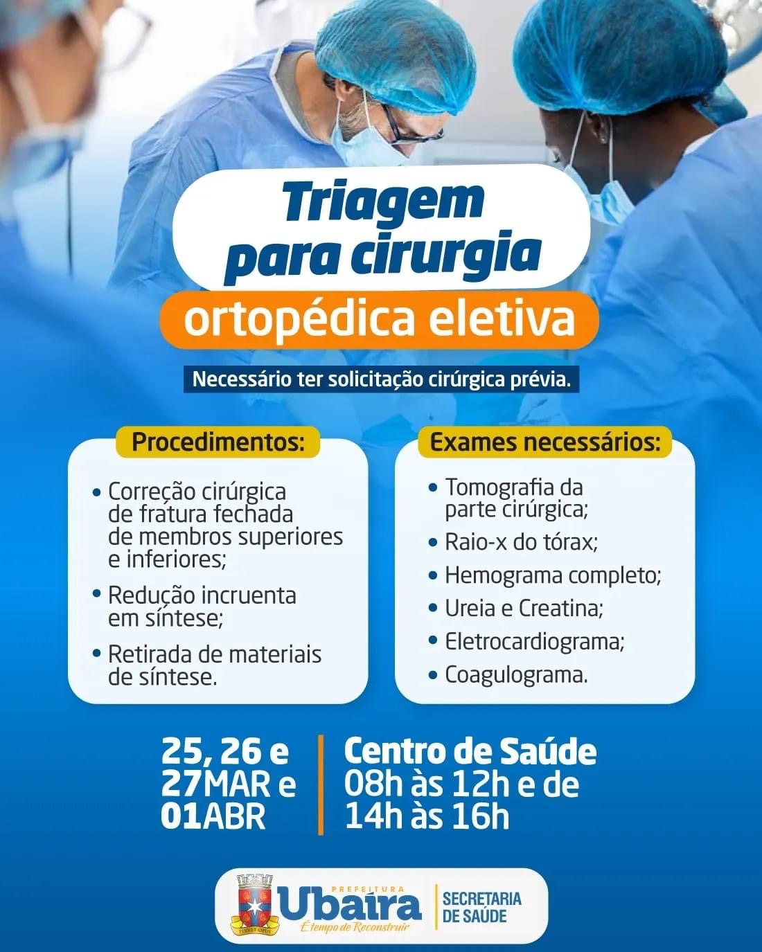Dias 25, 26 e 27 de março e 01 de abril, no Centro de Saúde, das 08h às 12h e de 14h às 16h.