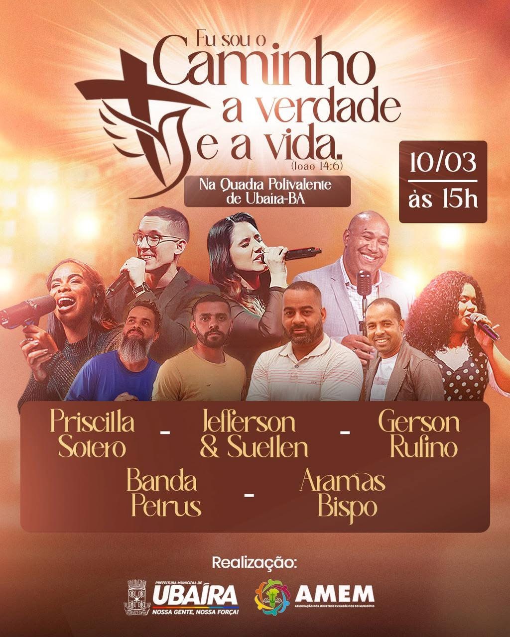 Entre as atrações confirmadas estão os cantores Jefferson e Suelen, Gerson Rufino, Aramas Bispo, Priscila Sotero e a Banda Petrus, que levarão ao público mensagens de fé e esperança por meio da música.