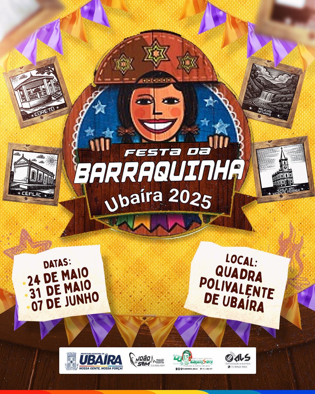 Nos dias 24 e 31 de maio e 7 de junho, Ubaíra será palco da Festa da Barraquinha 2025, uma celebração tradicional que movimenta a cidade com música, cultura e espírito comunitário.